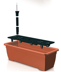 W zestawie z systemem nawadniającym umożliwiającym gromadzenie wody na dnie doniczki i pozwalającym w ten sposób na zmniejszenie częstotliwości podlewania.