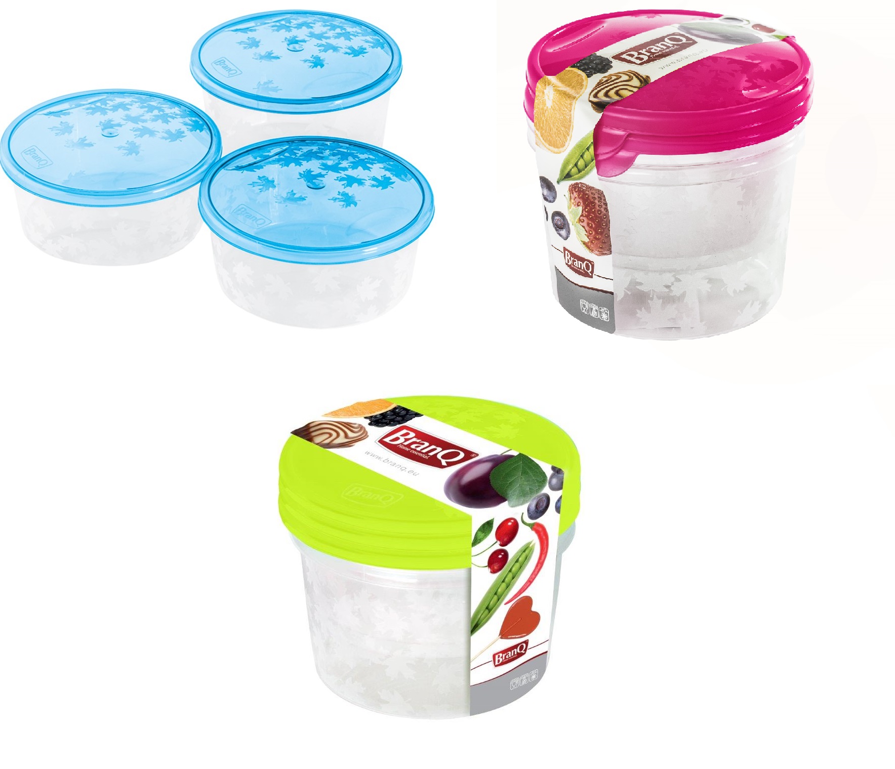 Komplet 3 Okrągłych Pojemników Rukolla BRANQ 2 x 0,5 L +0,75