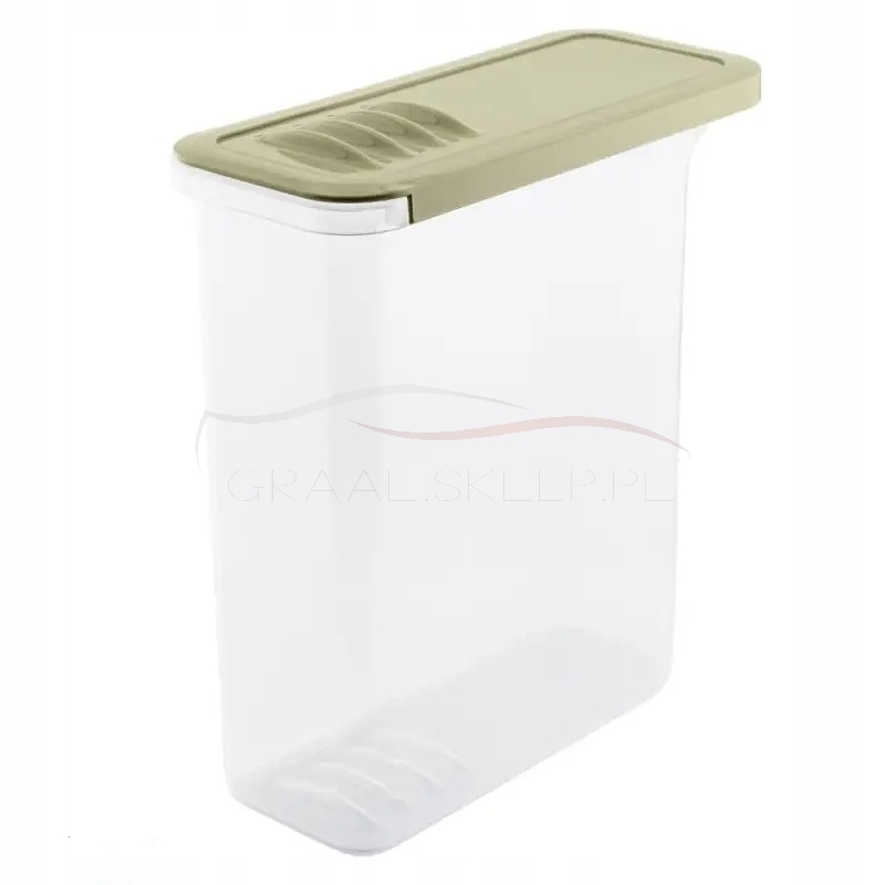 Został wykonany z tworzywa sztucznego, które chroni zawartość przed wilgocią. Ponadto plastik jest stosunkowo lekki, dzięki czemu pojemnik jest poręczny i łatwy w użyciu oraz przenoszeniu. Jest też stosunkowo odporny na stłuczenia. Pojemnik można myć w zmywarce. Bardzo gładka powierzchnia jest łatwa do utrzymania w czystości - maleńkie cząstki brudu nie będą miały do czego się przyczepić.
