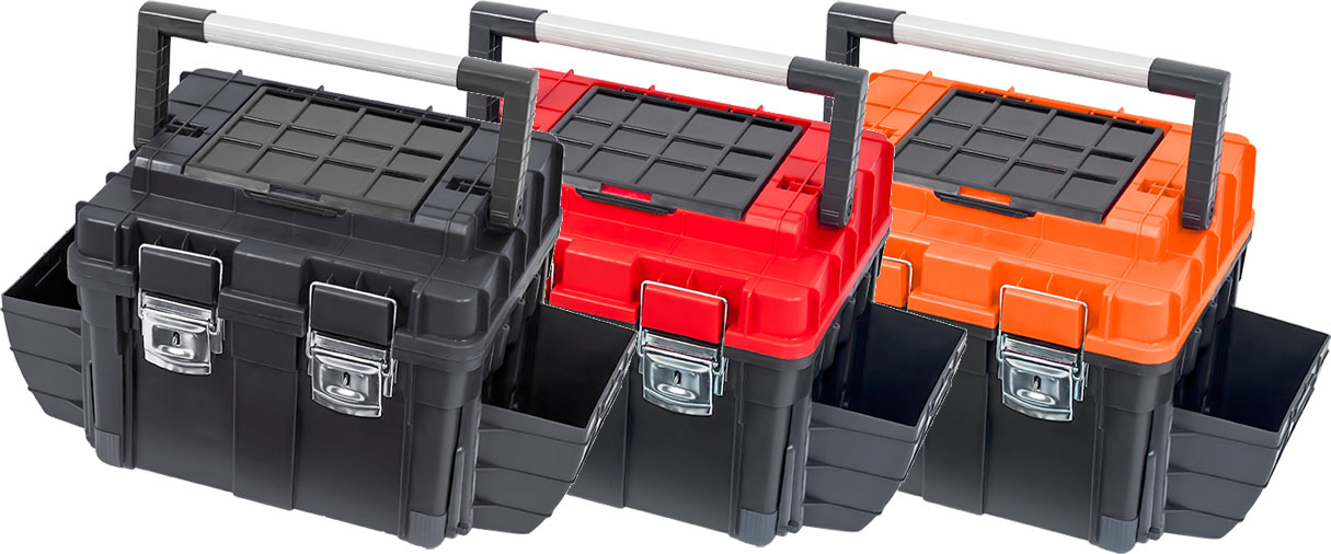Toolboxes - skrzynki narzędziowe, dedykowane dla domowych majsterkowiczów jak i profesjonalnych użytkowników. Doskonałe do przechowywania podstawowych narzędzi. Do bezpiecznego przewożenia cięższych narzędzi oferujemy skrzynie na kółkach z wygodnymi rączkami. Dodatkowe organizery w pokrywach wielu modeli naszych skrzyń są przeznaczone do magazynowania drobnych przedmiotów.