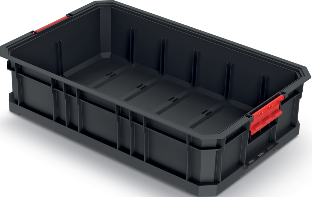Wyposażone w konektory, skrzynki łączą się ze sobą, ułatwiając transportowanie.