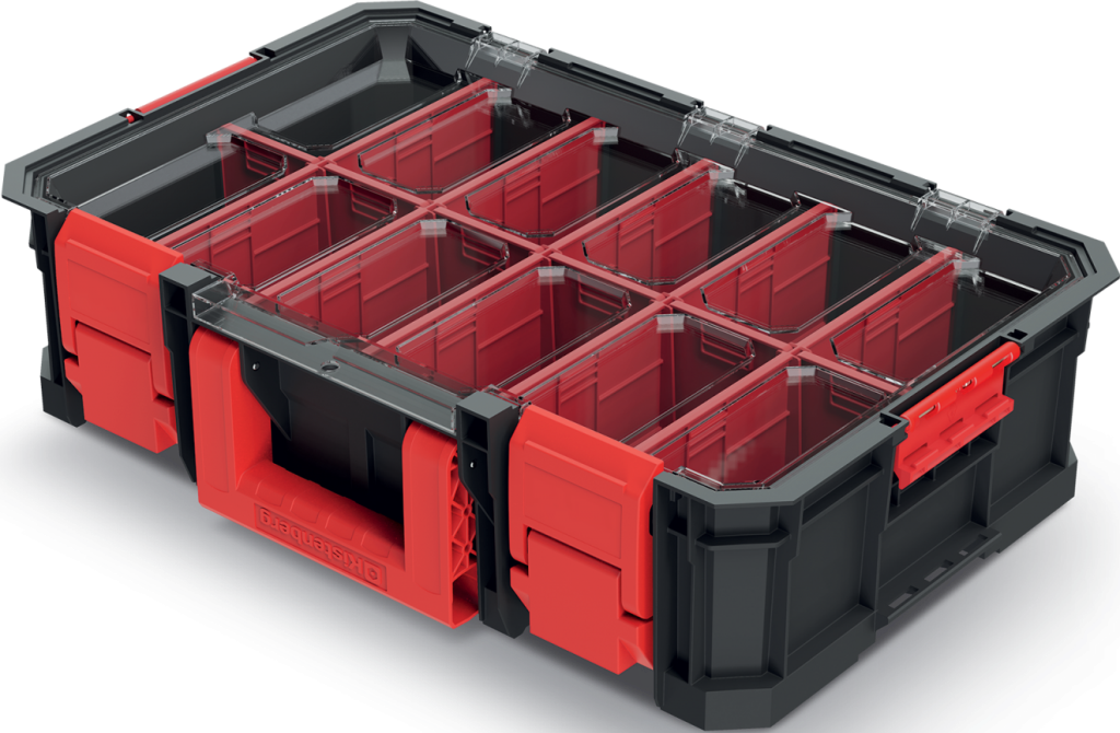 Skrzynka narzędziowa posiada 2 niezależne demontowalne przegrody.