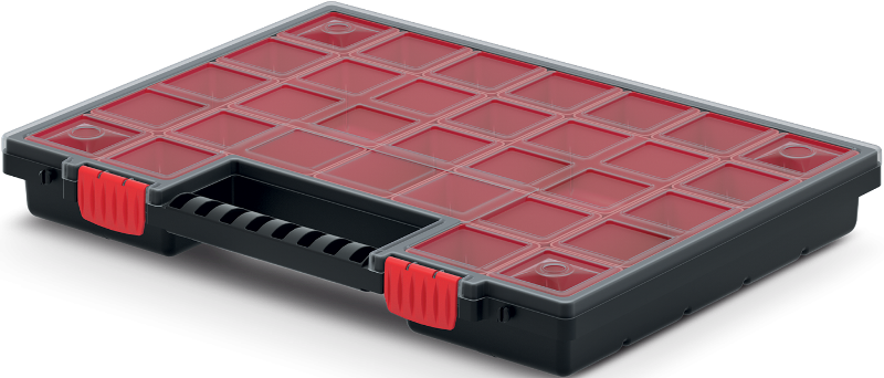 Produkt dostępny w 3 rozmiarach, wyposażony w uchwyt ułatwiający dźwiganie oraz demontowalne kubeczki występujące w 3 rozmiarach, które pozwalają na spersonalizowanie przestrzeni drobnicowej.