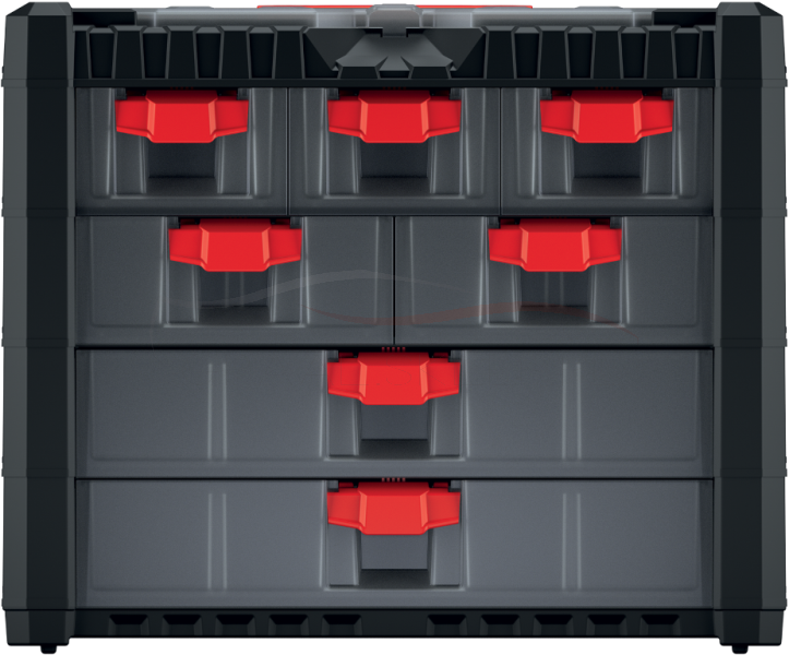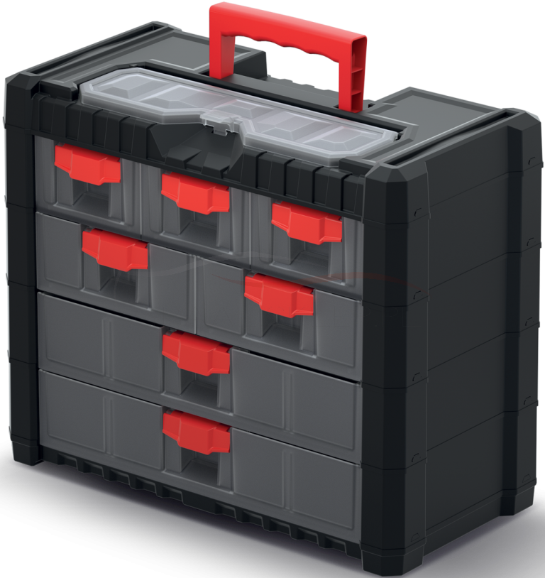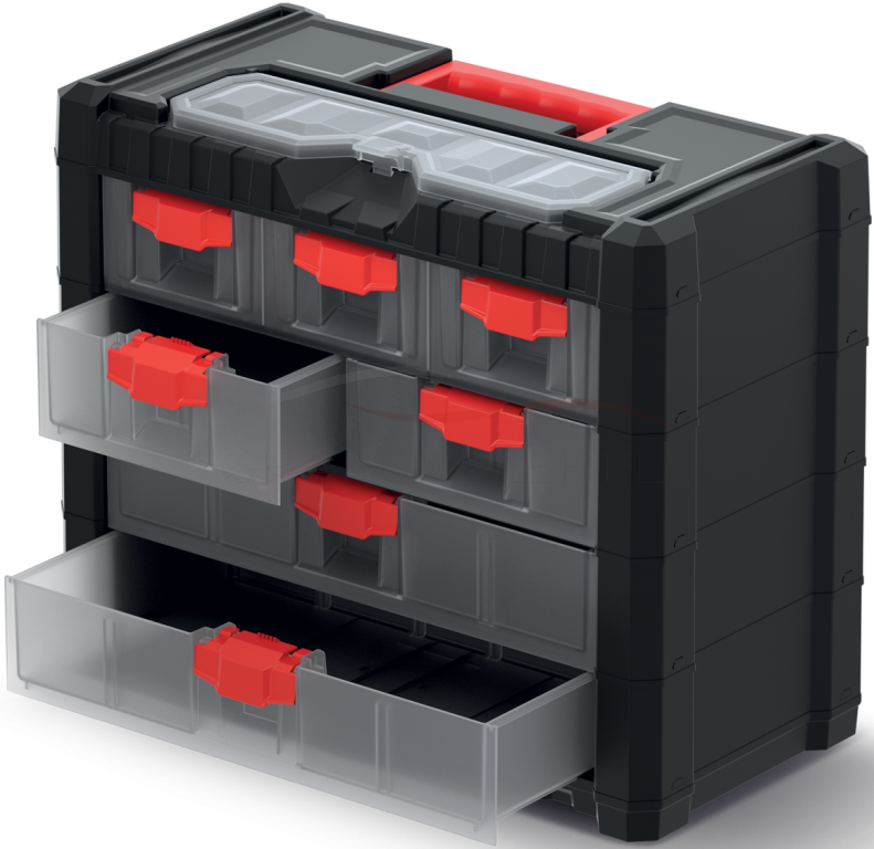 Produkt jest wyposażony w praktyczny uchwyt ułatwiający dźwiganie oraz transparentne szuflady.