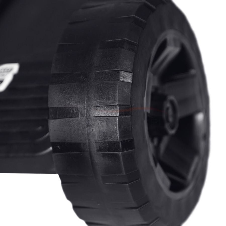 Duże koła najazdowe pokryte gumą, zamocowane na metalowej osi, pozwalają na forsowanie zróżnicowanych przeszkód terenowych (np. schody, podjazdy, grząski grunt).