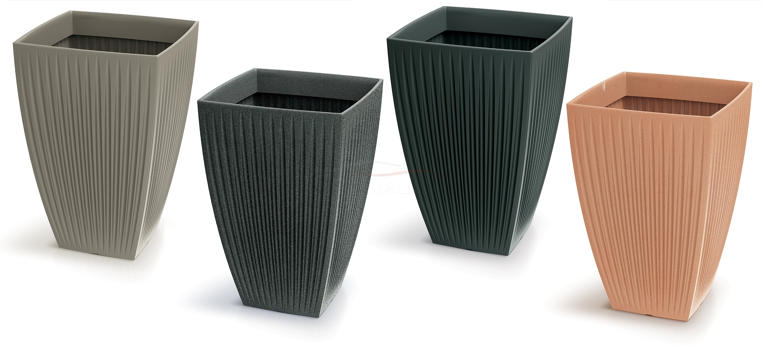 Powstałe w ramach serii Ethick donice Latia Square High od polskiej firmy Prosperplast eksponuje prosty, urzekający i klasycznie elegancki wzór, który przypomina estetyczny "odcisk" liści palmowych. A może kolumn greckich? Promieniste, podłużne żłobienia mogą budzić wiele przyrodniczych, idyllicznych czy starodawnych skojarzeń.