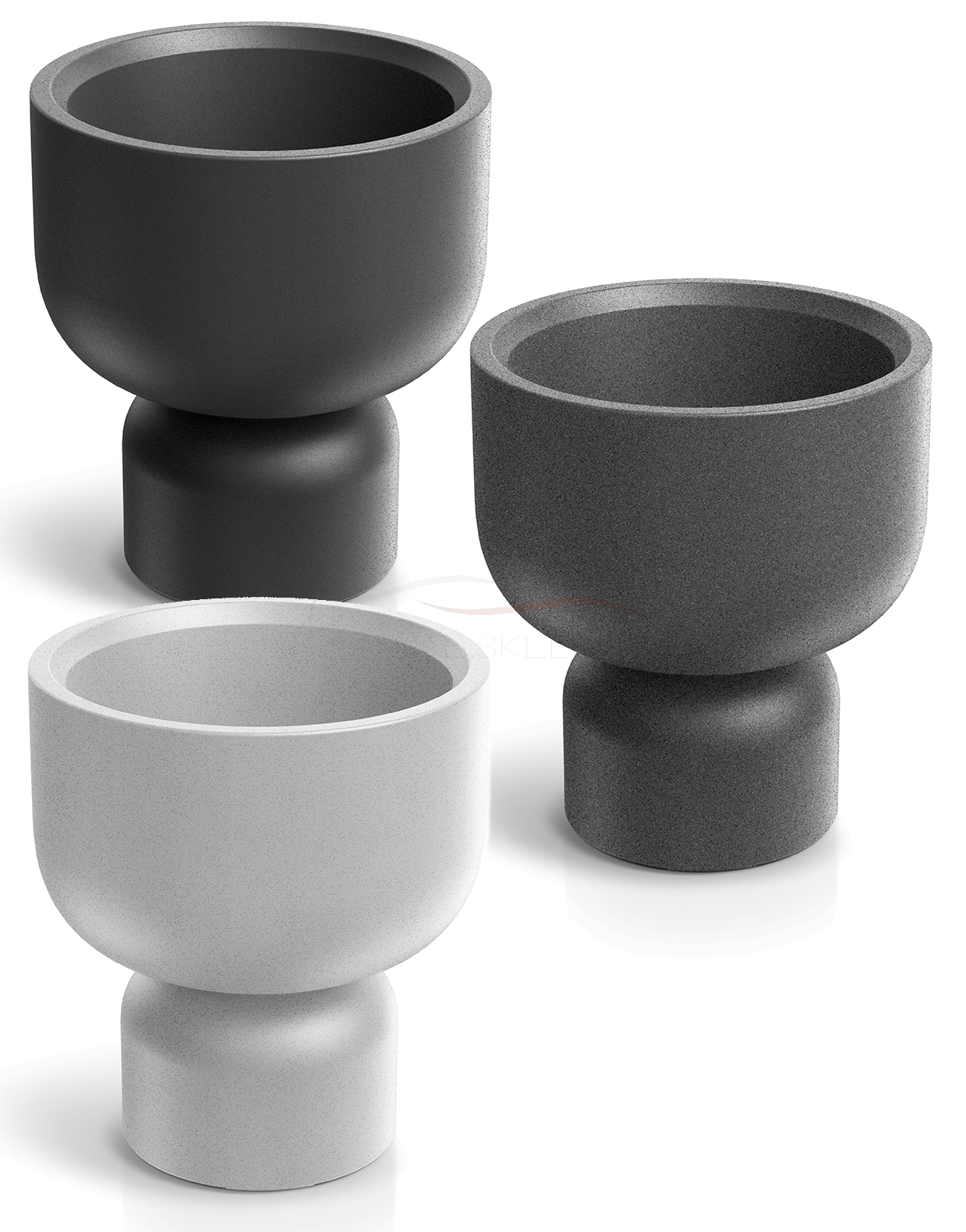 Dzięki okrągłej nodze-podeście, donica staje się jakby piedestałem. Nawiązania do klasycznych, czy wręcz starożytnych lub średniowiecznych wzorców stają się oczywiste dzięki zarówno kształtowi, jak i nazwie. Jeśli chcesz, by jedna z twoich roślin była wyszczególniona z pośród innych, to umieść ją w takiej donicy. Inne umieść w prostych donicach bez takich nóżek (np. w Molta round (bez nóżek) lub podobnych), w mniejszym lub podobnym rozmiarze.