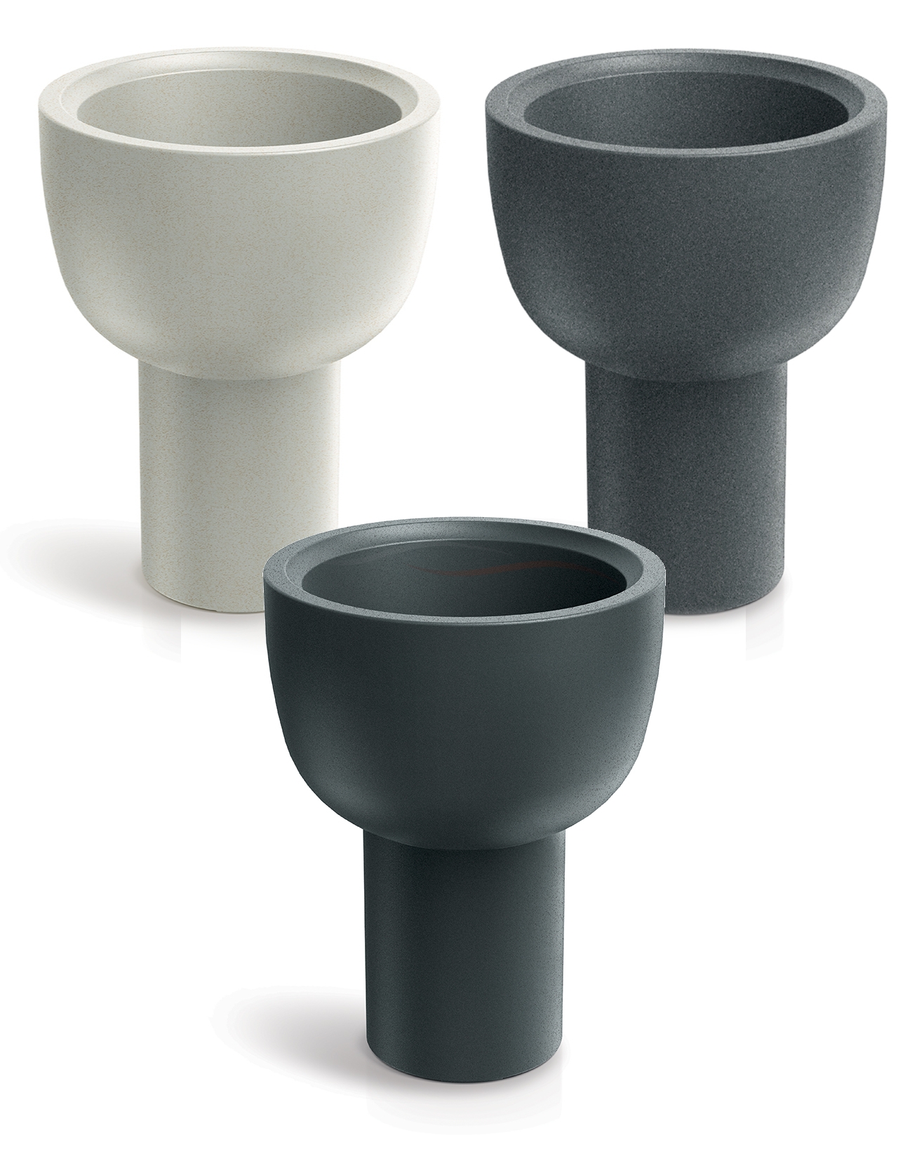Dzięki długiej kolumnowej podstawie u spodu, donica staje się jakby piedestałem. Nawiązania do klasycznych, czy wręcz starożytnych lub średniowiecznych wzorców staje się silniejsze. Jeśli chcesz, by jedna z twoich roślin była wyszczególniona z pośród innych, to umieść ją w takiej donicy. Inne umieść w prostych donicach bez takich nóżek (np. w Molta round (bez nóżek) lub podobnych), w mniejszym lub podobnym rozmiarze.