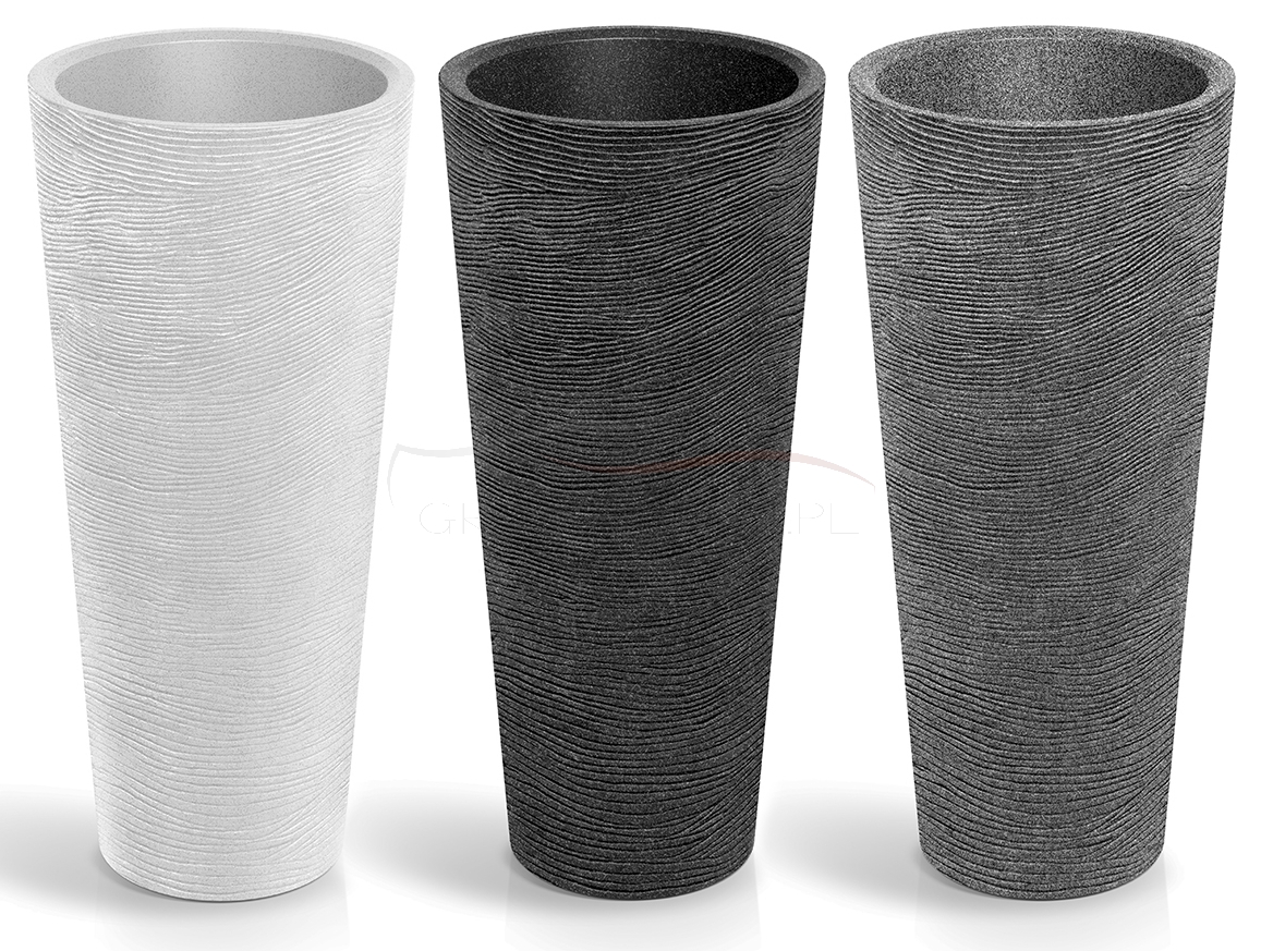 Donice Tubra Round slim od polskiej firmy Prosperplast Powstałe w ramach serii Ethick, stanowią zamknięcie płynących, delikatnych rękodzielnych form żłobień w geometrycznej, trapezoidalnej sylwecie. Wygląda jak zastygnięty nurt płynącej wody. Albo jak linearne formacje piasku kształtowane wiatrem. Albo jakby ktoś oplótł surowy, geometryczny kształt cienką, delikatną włóczką... Istnieje wiele różnych możliwych interpretacji, które mogą wywołać u posiadacza te przyjemniejsze skojarzenia.