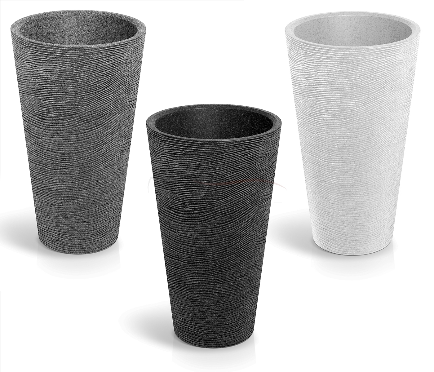 Donice Tubra Round slim od polskiej firmy Prosperplast Powstałe w ramach serii Ethick, stanowią zamknięcie płynących, delikatnych rękodzielnych form żłobień w geometrycznej, trapezoidalnej sylwecie. Wygląda jak zastygnięty nurt płynącej wody. Albo jak linearne formacje piasku kształtowane wiatrem. Albo jakby ktoś oplótł surowy, geometryczny kształt cienką, delikatną włóczką... Istnieje wiele różnych możliwych interpretacji, które mogą wywołać u posiadacza te przyjemniejsze skojarzenia.