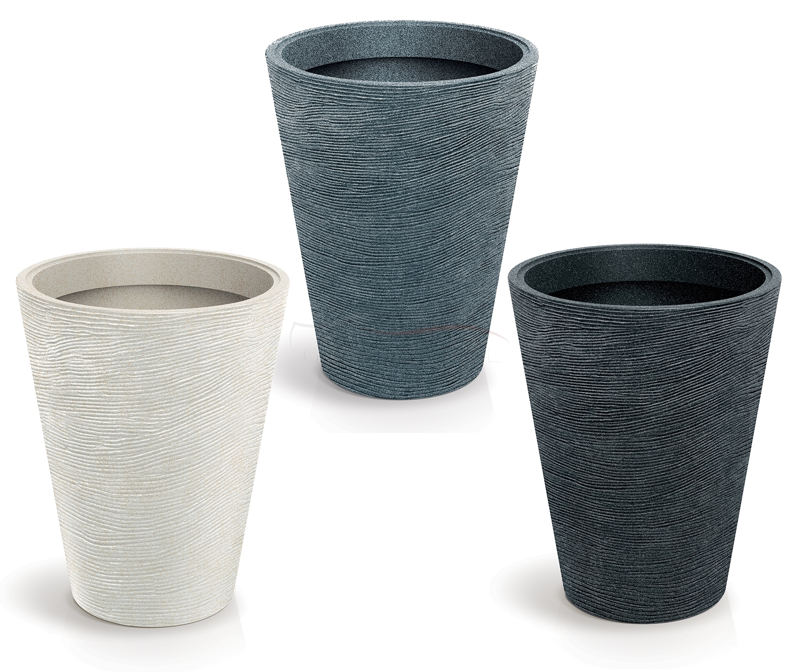 Donice Tubra Round od polskiej firmy Prosperplast Powstałe w ramach serii Ethick, stanowią zamknięcie płynących, delikatnych rękodzielnych form żłobień w geometrycznej, trapezoidalnej sylwecie. Wygląda jak zastygnięty nurt płynącej wody. Albo jak linearne formacje piasku kształtowane wiatrem. Albo jakby ktoś oplótł surowy, geometryczny kształt cienką, delikatną włóczką... Istnieje wiele różnych możliwych interpretacji, które mogą wywołać u posiadacza te przyjemniejsze skojarzenia.