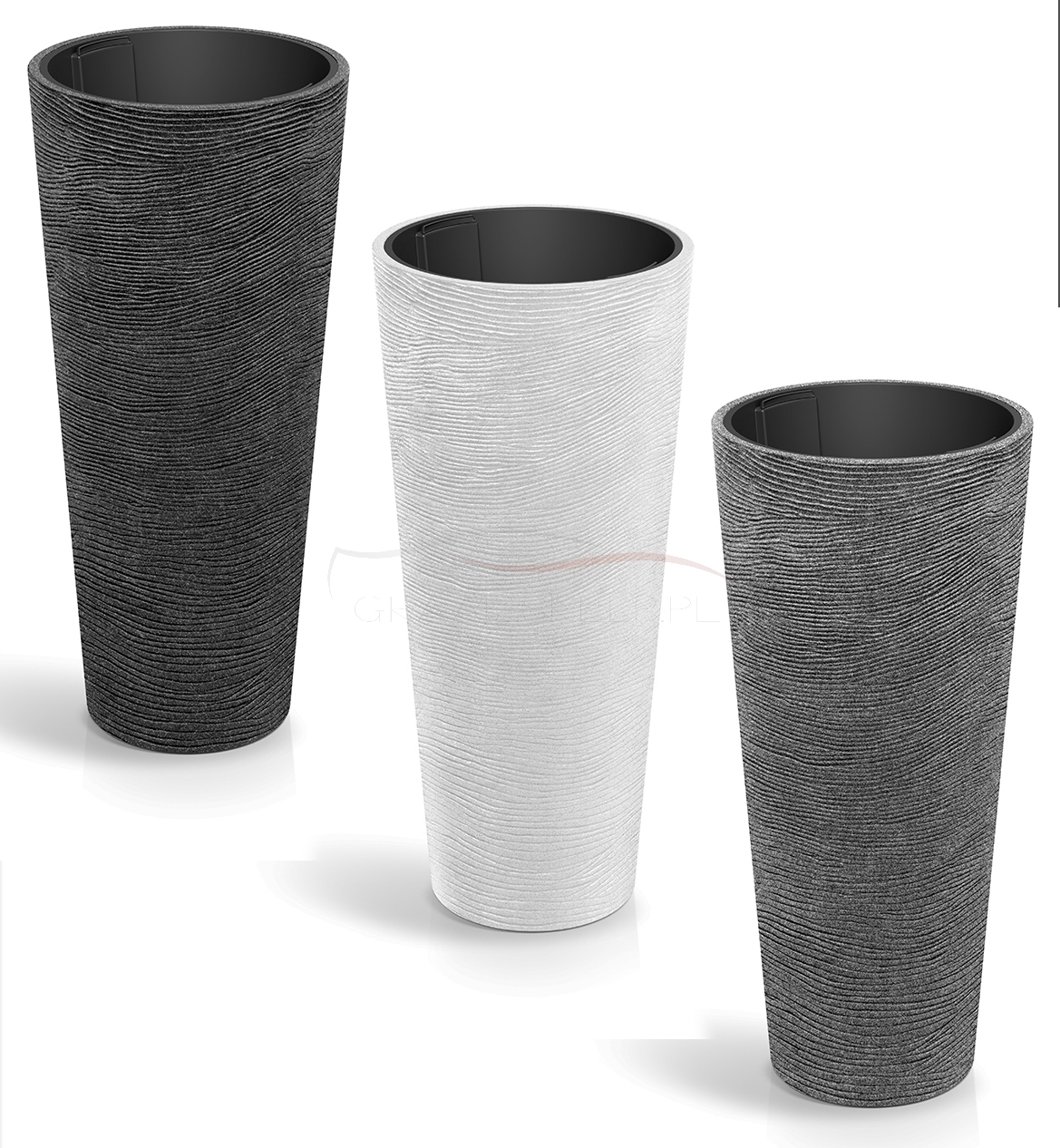 Donice Tubra Round slim od polskiej firmy Prosperplast Powstałe w ramach serii Ethick, stanowią zamknięcie płynących, delikatnych rękodzielnych form żłobień w geometrycznej, trapezoidalnej sylwecie. Wygląda jak zastygnięty nurt płynącej wody. Albo jak linearne formacje piasku kształtowane wiatrem. Albo jakby ktoś oplótł surowy, geometryczny kształt cienką, delikatną włóczką... Istnieje wiele różnych możliwych interpretacji, które mogą wywołać u posiadacza te przyjemniejsze skojarzenia.