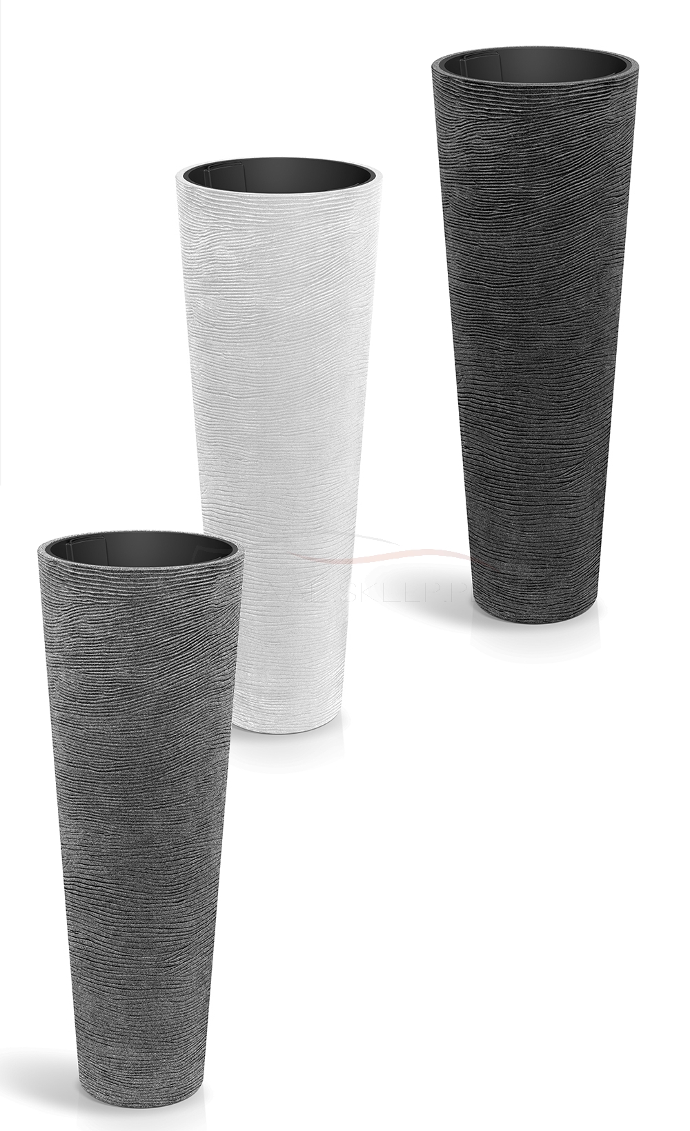 Donice Tubra Round slim high od polskiej firmy Prosperplast Powstałe w ramach serii Ethick, stanowią zamknięcie płynących, delikatnych rękodzielnych form żłobień w geometrycznej, trapezoidalnej sylwecie. Wygląda jak zastygnięty nurt płynącej wody. Albo jak linearne formacje piasku kształtowane wiatrem. Albo jakby ktoś oplótł surowy, geometryczny kształt cienką, delikatną włóczką... Istnieje wiele różnych możliwych interpretacji, które mogą wywołać u posiadacza te przyjemniejsze skojarzenia.