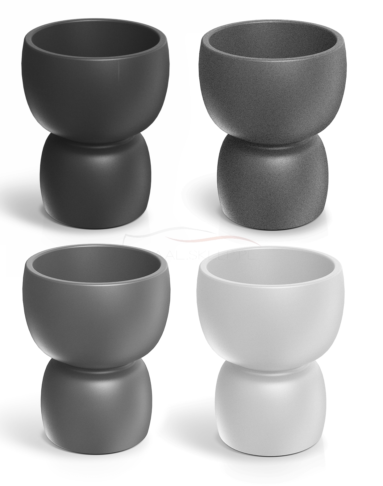 Prosta kompozycja i gładka faktura oparta na klasycznych formach ceramicznych czy też naturalnych przypomina zespolenie dwóch kamieni w jakimś procesie geologicznym, bądź niecodzienne ukształtowanie zarodka jajowego. Z takiego połączenia formuje się kształt piedestału, wynoszący (dosłownie i w przenośni) roślinę, czyniąc ją istotną w aranżacji.