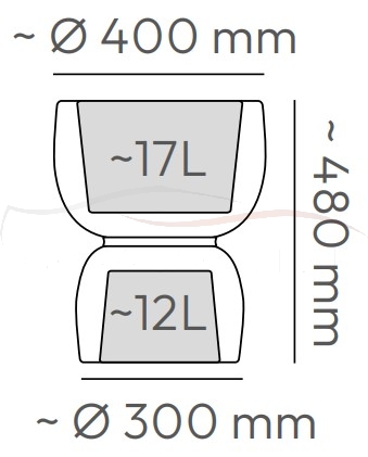 To co widzimy to są dwie donice połączone ze sobą spodami po środku. Obie części kształtu zawierają zarówno przestrzeń do wypełnienia ziemią, jak i zawory do odprowadzania wody. Dzięki temu ta sama donica może w razie czego stanowić podstawę dla dwóch różnych roślin - szczególnie przydatne, jeśli ktoś często zmienia aranżację roślinną bądź nie jest pewien, jaką roślinę posiądzie. Przestrzeń pod spodem może też stanowić schowek...
