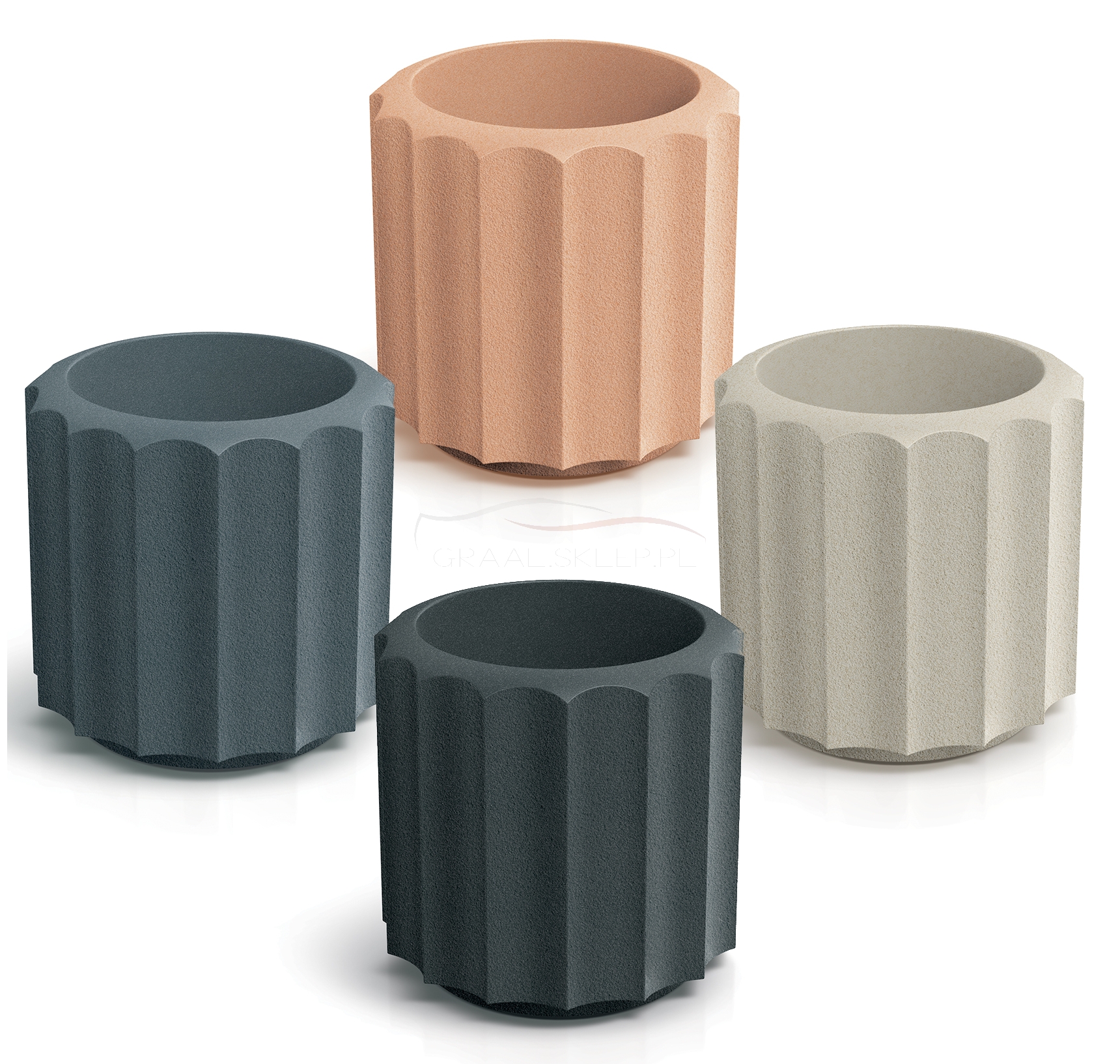 Doniczka Rona Line od firmy Prosperplast, to kolejny przykład nawiązań do antycznych tradycji w ramach ich nowej marki Ethick. Donica zdaje się być wycinkiem starogreckich kolumn dzięki rynnowym wyżłobieniom, przypominającym kanelury. Donica stara się w ciekawy sposób wykorzystać unikalny walor, należący do uznanego klasycznego kanonu architektonicznego.