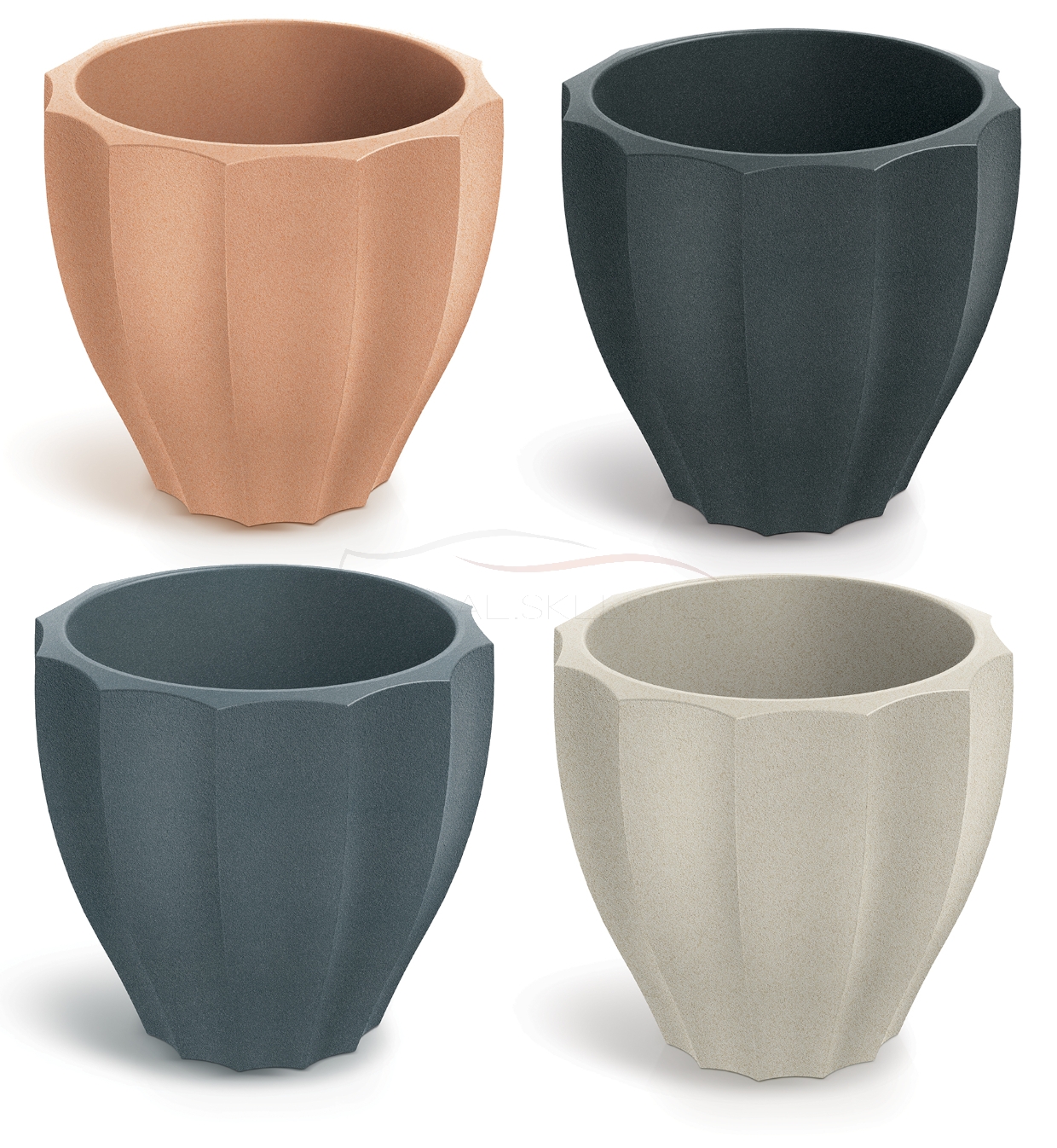 Doniczka Rona round od firmy Prosperplast, to kolejny przykład nawiązań do antycznych tradycji w ramach ich nowej marki Ethick. Donica zdaje się być wykonana na modłę starogreckich kolumn, dzięki rynnowym wyżłobieniom, przypominającym kanelury. Donica stara się w ciekawy sposób wykorzystać unikalny walor, należący do uznanego klasycznego kanonu architektonicznego, wpleciony w klasyczną formę donicy.