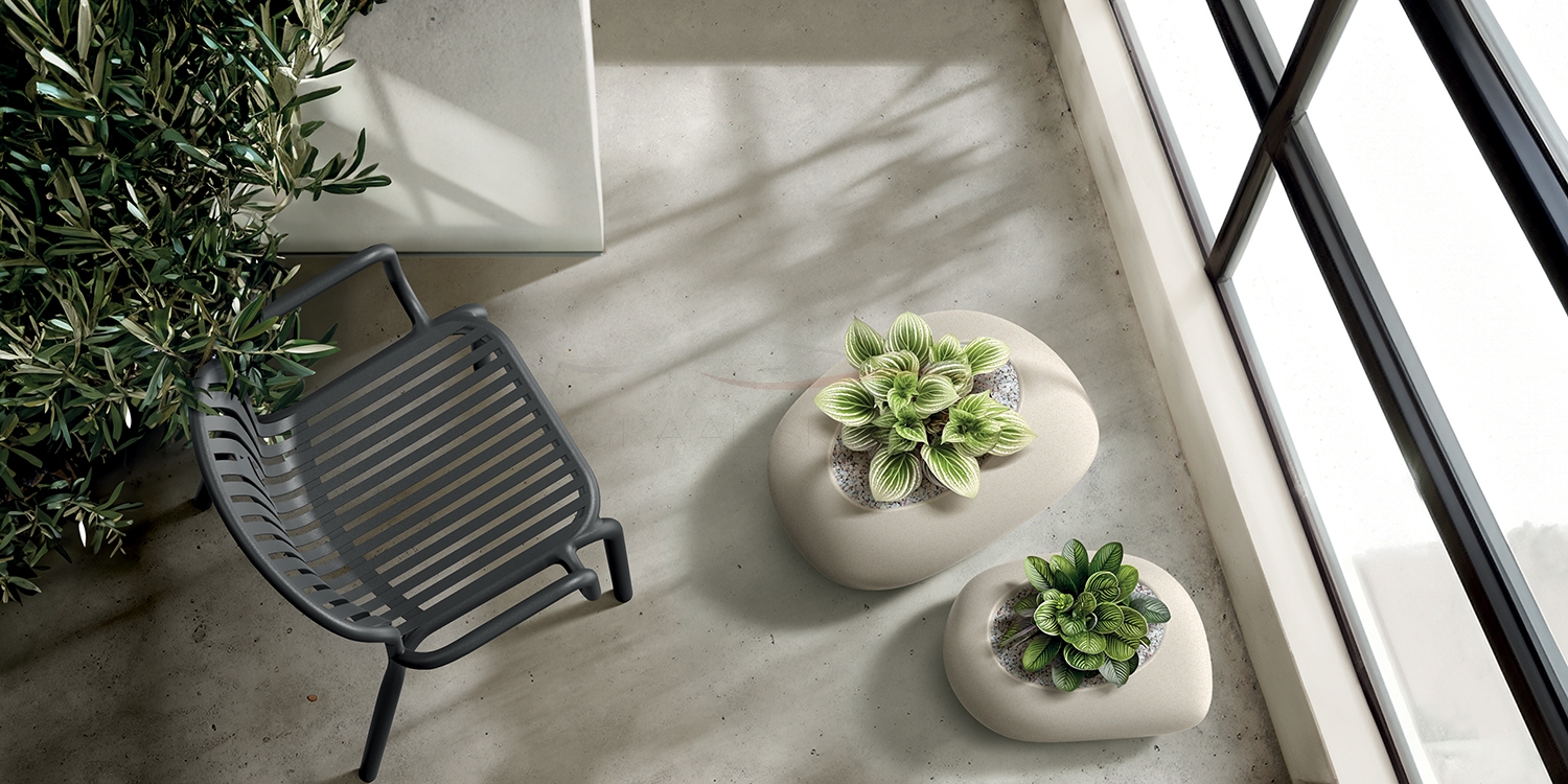 Zaokrąglona forma nawiązuje do kształtu kamienia otoczaka, czy innych mineralnych form kształtowanych przez wodę lub wiatr. Ziarnisty wzór dodaje jej naturalności, jakby została wyprofilowana z kamienia. Może być jednocześnie świetnym uzupełnieniem nowoczesnych lub klasycznych wnętrz, a zarazem świetnym sposobem na rozbicie ich konwencjonalności. Jest też świetnym uzupełnieniem dla bardziej fantazyjnych wnętrz pełnych zaokrąglonych mebli i innych elementów.