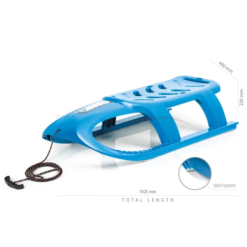 Wykonane z mocnego tworzywa sztucznego sanki cechują się lekkością i są odporne na uszkodzenia. Wykonano go ze specjalnego plastiku, uodpornionego na mrozy aż do -28 stopni. Jest lekki i nie mrozi ręki w dotyku, tak jak metal.