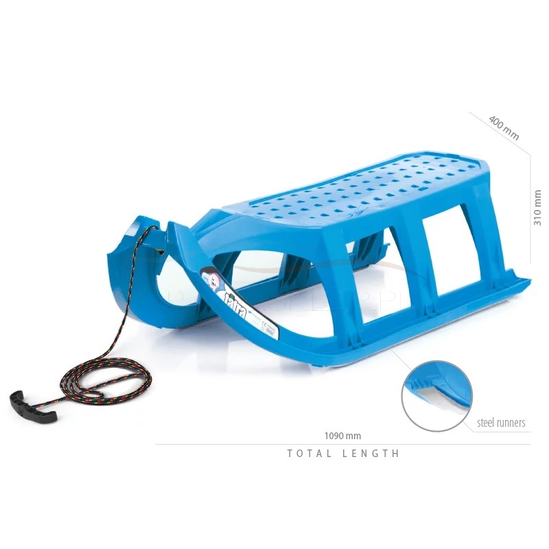 Proponowany model został wykonany z bardzo trwałego tworzywa sztucznego o wysokiej odporności na uszkodzenia. Wykonano go ze specjalnego plastiku, uodpornionego na mrozy aż do -28 stopni. Jest lekki i nie mrozi ręki w dotyku, tak jak metal. Jego odporność dobrze odpowiada sytuacjom, w których takie sanie się znajdą.