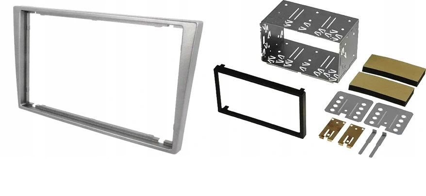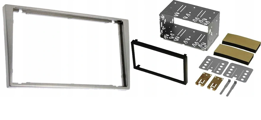 Ramka radiowa z półkieszenią; Opel,Renault, 2 DIN; srebrny jasny