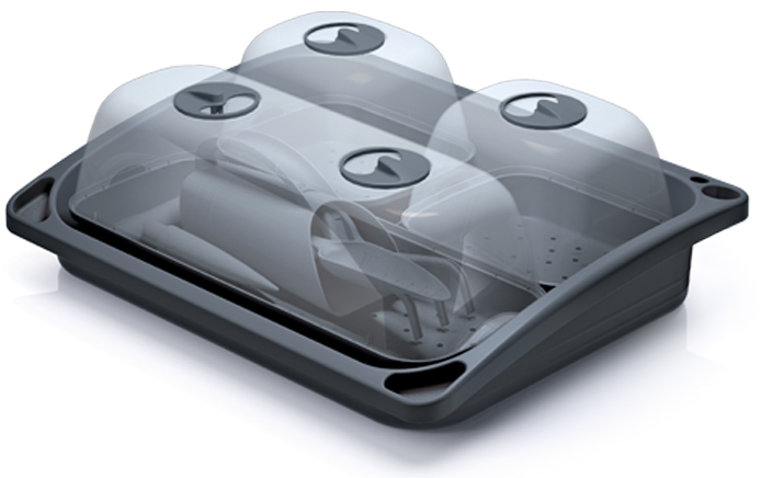Transparentne kopuły, wyposażone w otwory wentylacyjne, zapewniają odpowiednią wilgotność nasadzeń oraz chronią je przed szkodliwymi owadami.