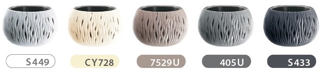 Doniczki z kolekcji Sandy posiadają powierzchnię uszlachetnioną łagodnie falującymi pionowymi żłobieniami, uformowanymi na wzór pustynnego piachu.