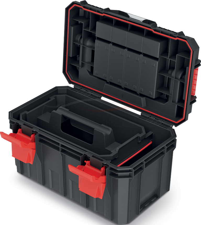 Skrzynka narzędziowa X-BLOCK SOLID TOOLBOX PRO wyposażona została w litą uszczelkę, jest w pełni wodoszczelna i spełnia normy IP65.