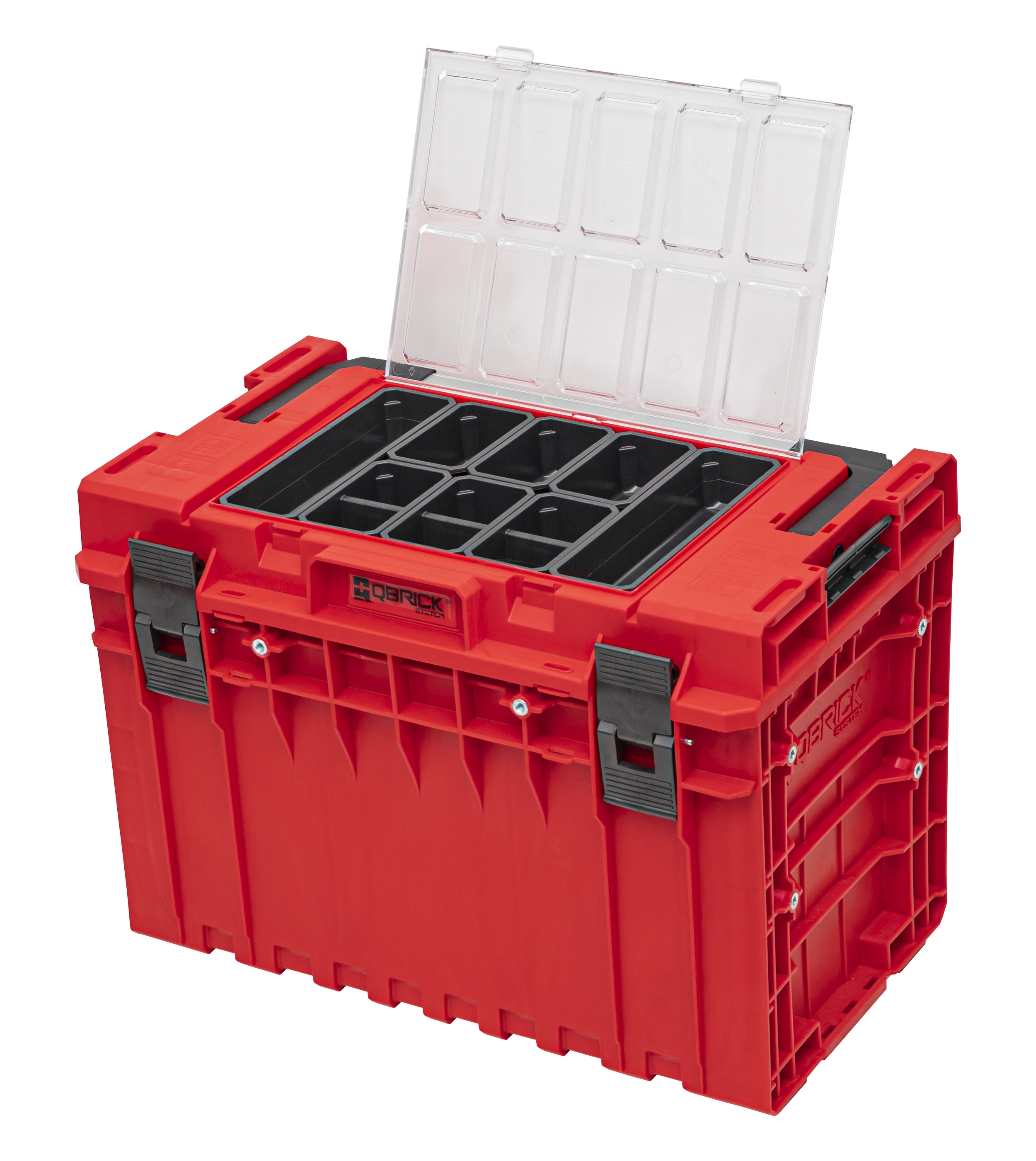 ONE 450 to skrzynia narzędziowa o bardzo dużej pojemności 52 l. Dzięki temu jest w stanie pomieścić duże elektronarzędzia i narzędzia ręczne. Dwie regulowane przegrody pozwalają na utrzymanie porządku wewnątrz skrzyni. Każda skrzynia wyposażona jest w elastyczną uszczelkę, która zapewnia pełna ochronę przed wnikaniem kurzu i wody (IP66).