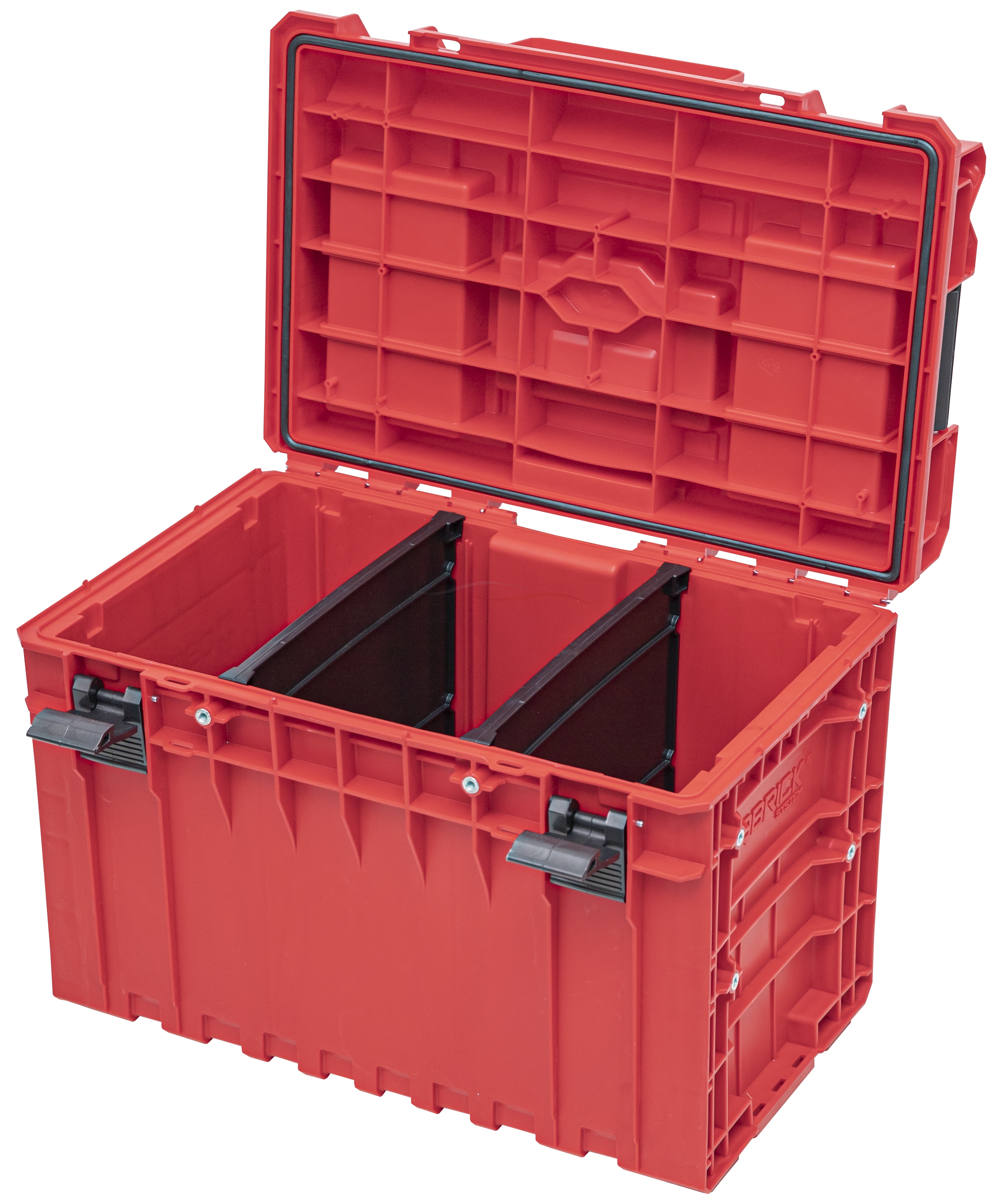 Dzięki temu jest w stanie pomieścić duże elektronarzędzia i narzędzia ręczne. Dla lepszej organizacji wnętrza skrzynia jest wyposażona w dwie tacki i dwie przegrody (w tym przegrodę Multi z uchwytami na narzędzia ręczne). Każda skrzynia wyposażona jest w elastyczną uszczelkę, która zapewnia pełną ochronę przed wnikaniem kurzu i wody (IP66).