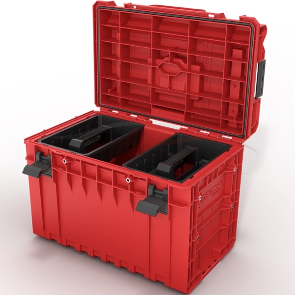 Pełną ochronę przez wnikaniem kurzu i wody (IP66) zapewnia elastyczna uszczelka umieszczona w pokrywie. Skrzynię dodatkowo wyposażyliśmy w Adaptery QS PRO Connect, dzięki którym możesz połączyć ją również ze skrzyniami z linii PRO (500, Toolcase, Technician Case, Toolbox) oraz organizerami PRO (100, 200 i 300).