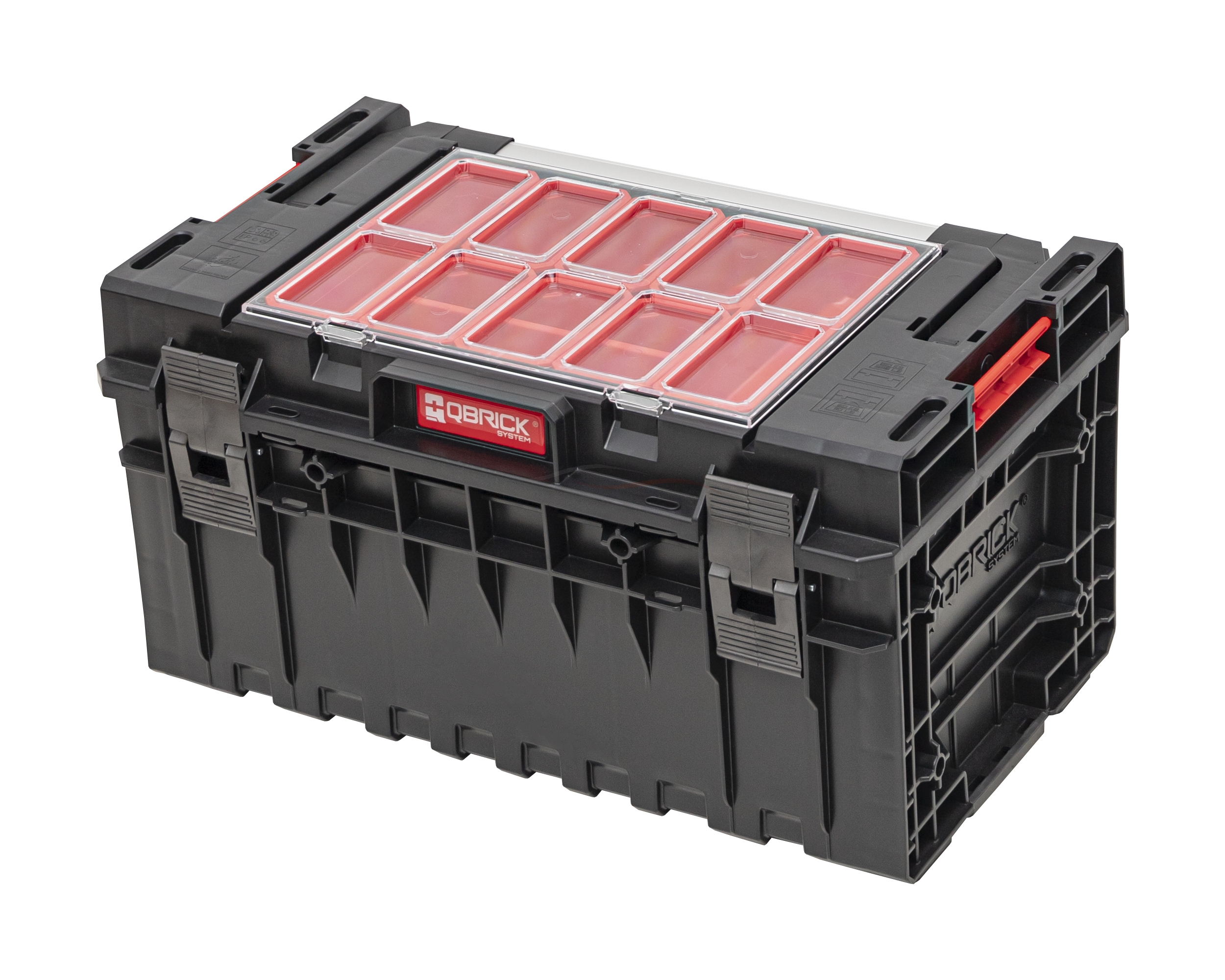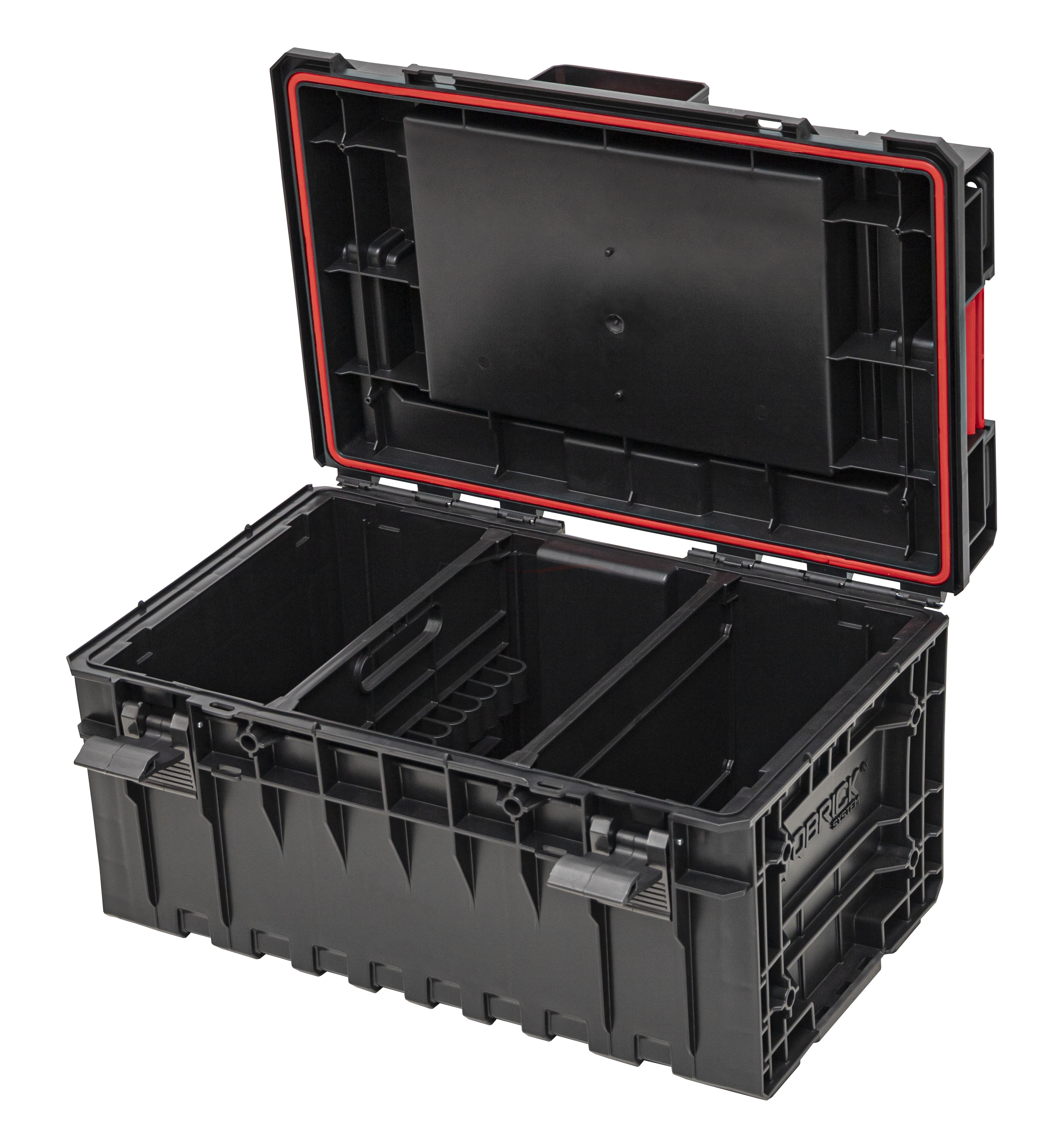 ONE 350 to duża skrzynia narzędziowa o pojemności 38 l. Dzięki temu jest w stanie pomieścić sporej wielkości elektronarzędzia i narzędzia ręczne. Każda skrzynia wyposażona jest w elastyczną uszczelkę, która zapewnia pełna ochronę przed wnikaniem kurzu i wody (IP66). W standardzie wyposażona jest w dwie regulowane przegrody zapewniające doskonałą organizację przestrzeni wewnątrz skrzyni.