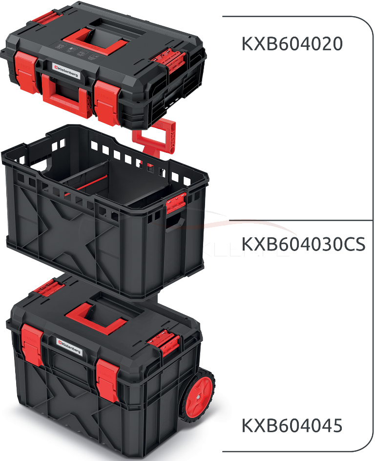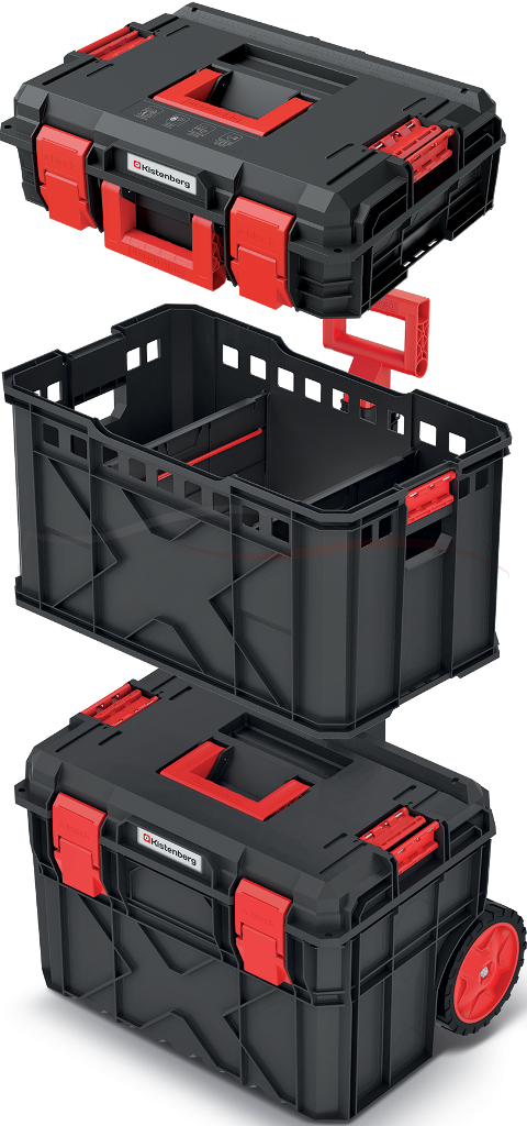 Szczelnie zaprojektowane skrzynie dostępne w wersji PRO; LOG lub TECH wyposażone w litą uszczelkę to pyłoszczelne i odporne na działania wody pojemniki warsztatowe służące do przechowania i transportowania ciężkich narzędzi, które spełniają normy IP65. Zestaw składa się z trzech produktów.