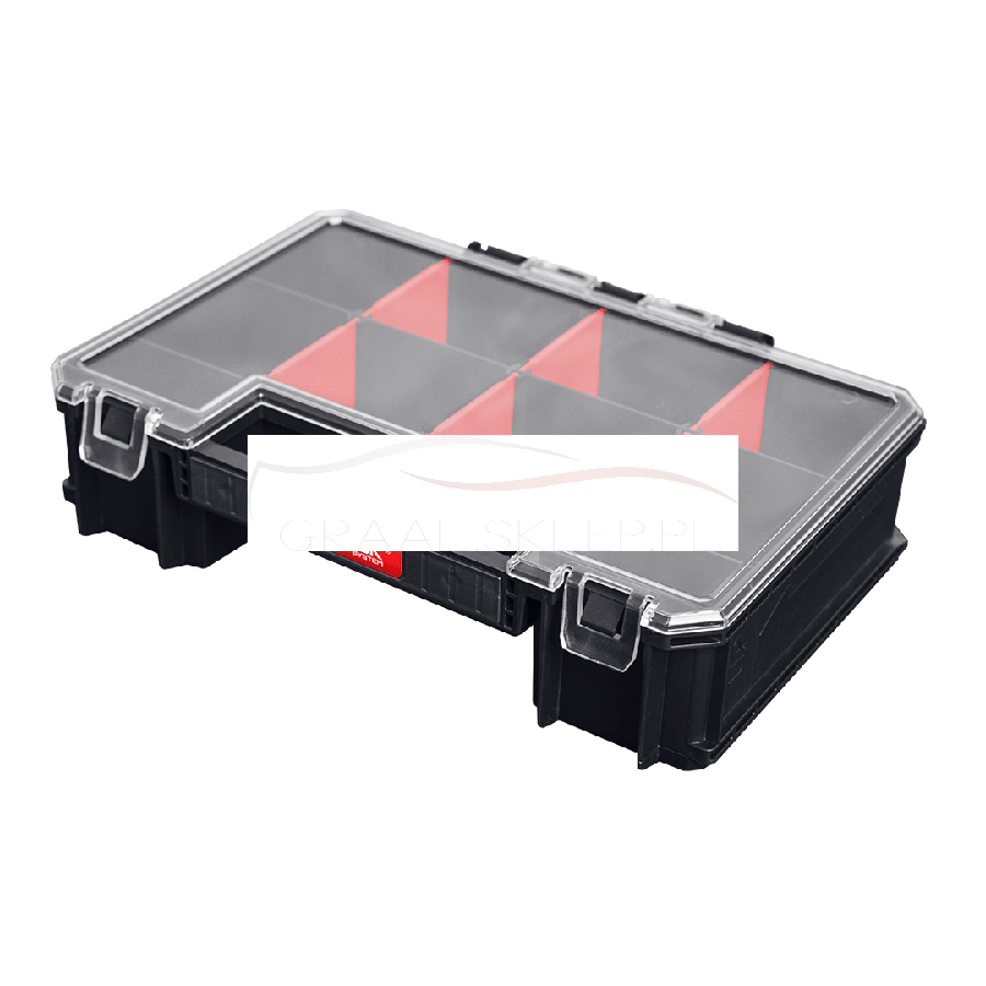 Specjalne prowadnice wewnątrz QS PRO Toolbox pozwolą na umieszczenie w nich Organizerów QS TWO Multi, dedykowanych do przechowywania drobnych akcesoriów warsztatowych.