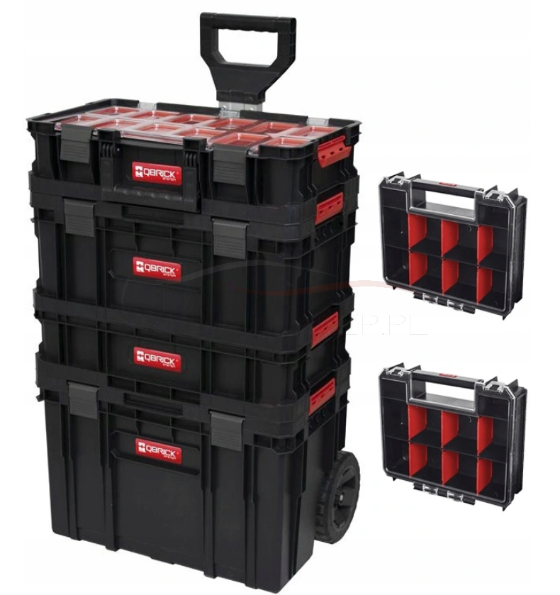 Modularna skrzynia narzędziowa będąca mobilną podstawą do budowy spersonalizowanych zestawów TWO. Solidna teleskopowa rączka, metalowa oś, duże koła pokryte gumą gwarantują wytrzymałość i doskonałą zwrotność.