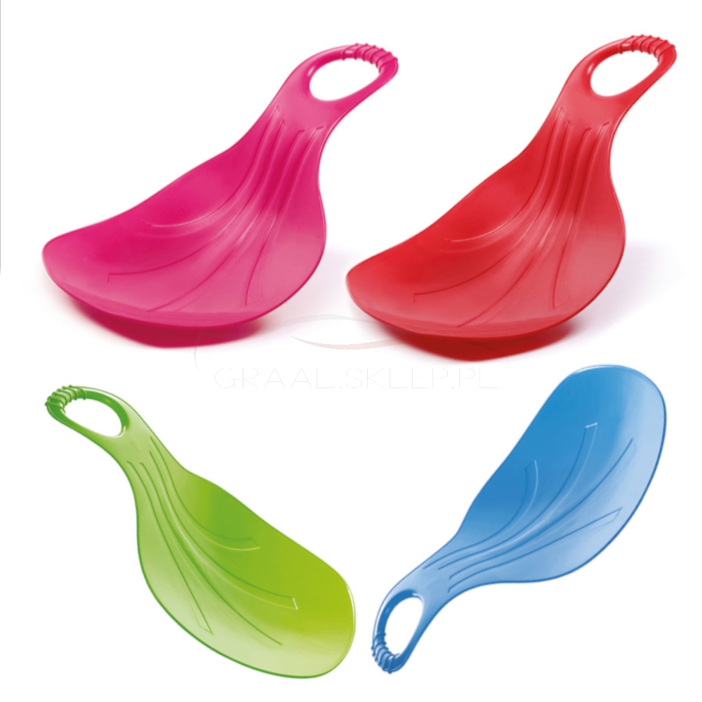 Prosty kształt jest wyprofilowany tak, by stanowił pewne siedzisko. Dodatkowe ożebrowania zwiększą jego wytrzymałość. Jasne kolory będą atrakcyjne dla dzieci oraz łatwe do wypatrzenia w śniegu.