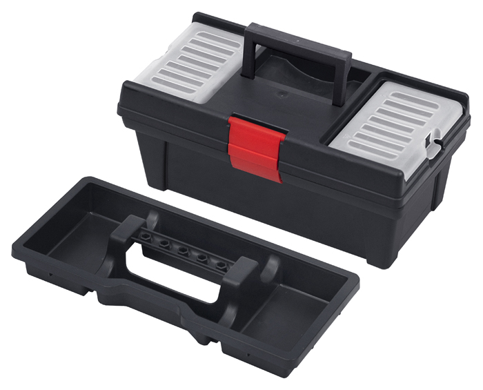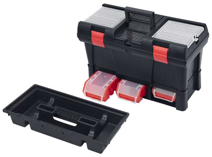 Głęboka tacka z wygodną rączką - do przegród, w które jest wyposażona idealnie pasują niewielkie pojemniki magazynowe, ułatwiające posegregowanie akcesoriów takich jak śrubki czy nakrętki.
