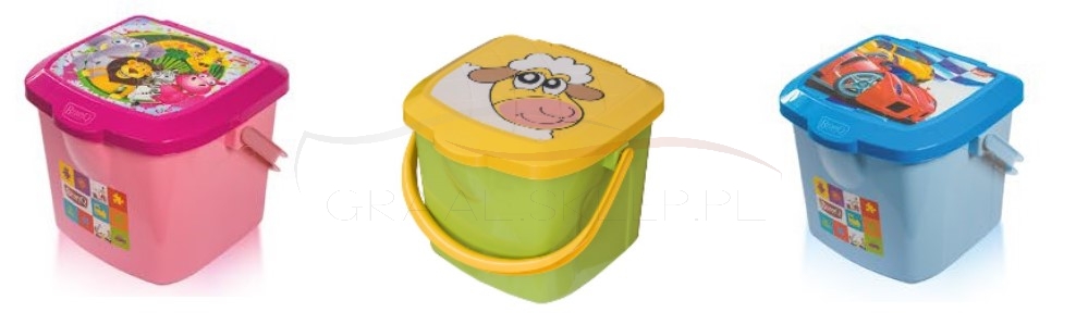 Na pokrywie znajduje się kolorowy motyw, atrakcyjny dla dziecka. Po zamknięciu pojemnika można na nim usiąść. Wykonane z wysokiej jakości polipropylenu. Bardzo wytrzymałe. Łatwe do utrzymania w czystości.
