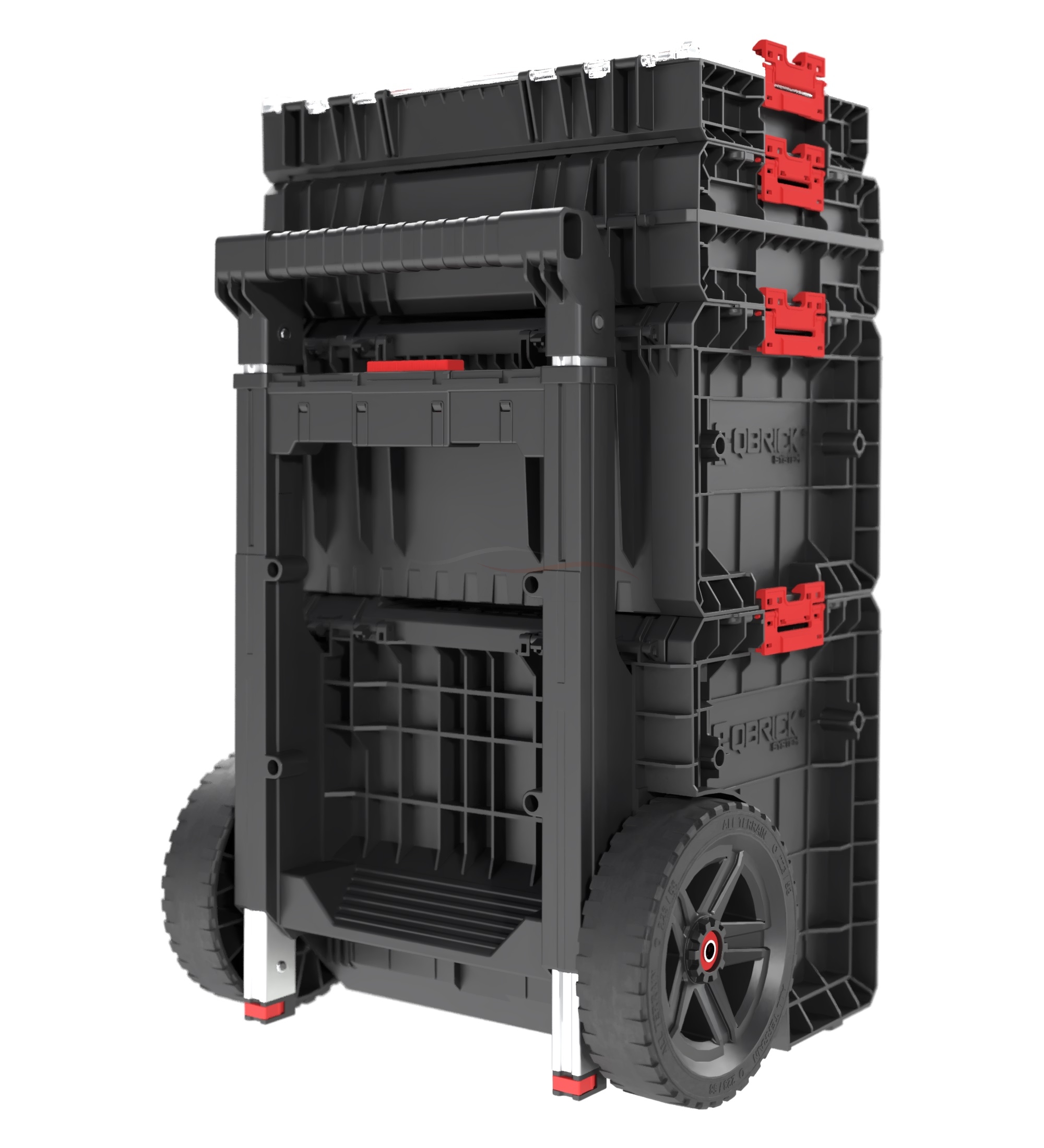 Qbrick System PRO Cart 2.0 Plus to mobilna skrzynia na kołach. Wyposażona w podwójną, teleskopową rączkę z możliwością demontażu oraz wygodny podest pod stopę pozwalają na pewny chwyt i łatwe manewrowanie na stosunkowo małej powierzchni. Duże – 9 calowe koła o szerokości prawie 6 cm pokryte są grubą warstwą gumy, co zapewnia bezproblemową trakcje w nawet najcięższych warunkach.